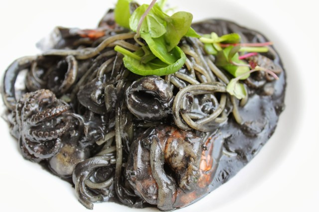 A couple weeks ago I took a three day trip to Seoul on my way to Beijing from Tokyo. Once I got myself situated at my place in the Gangam distrcit, I took a walk down to Garosu-gil, which is an area in Sinsa-dong. The name literally means tree-lined street, which is appropriate considering the street is lined with tons of ginkgo trees. I liken the area to the Newbury Street of Seoul. There are a lot of cool little shops and cafes to hang out. I stopped by Per Se (right across the street from Theory) to grab a bite to eat and do a little reading. I snagged some milk tea, and instead of the traditional Korean BBQ, I went for ink pasta with some calamari and shrimp.