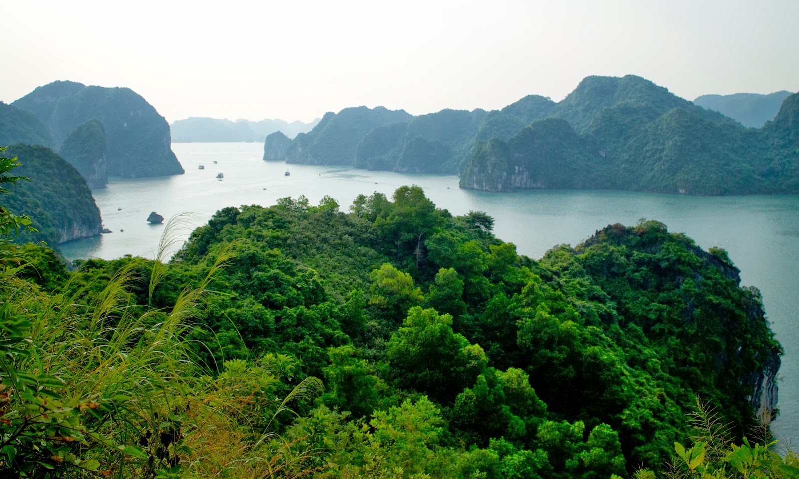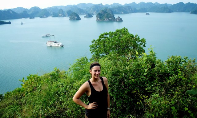 Once the sun was up and I got a cup of tea (or four) and some croissants in me, it was off to another island for our final excursion before we headed back to shore. A small tender boat dropped us off at the beach and we climbed to the top of the mountain, well more like hill, to soak in the last few moments in Halong Bay.