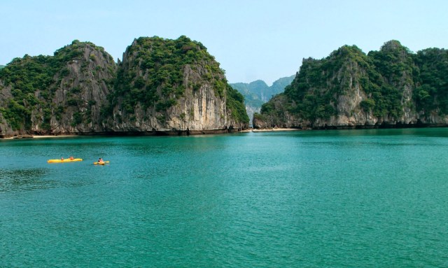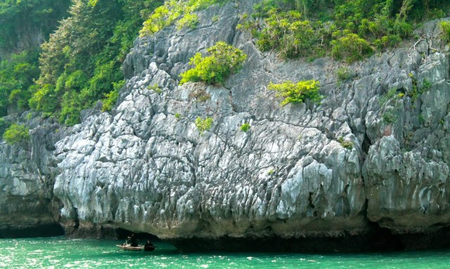 After our amazing bike ride on Cat Ba Island, it was off to another set of small islands, in Ho Ba Ham, where we could swim up to a beautiful beach, go kayaking and jump off of the roof of the boat into the water. We were provided a delicious 5 course lunch with very traditional Vietnamese dishes, and there was also a full bar on the boat, at your convenience, if you felt like indulging with a mango lassi or something a little stronger.