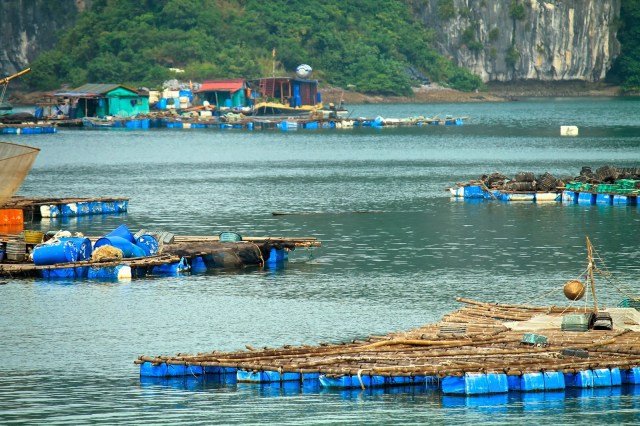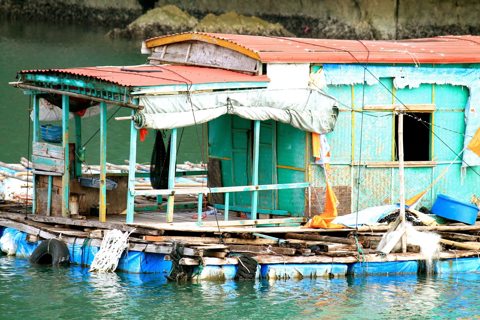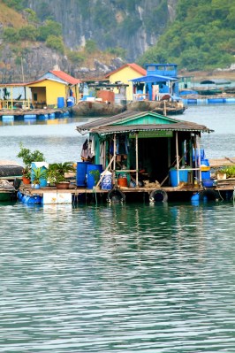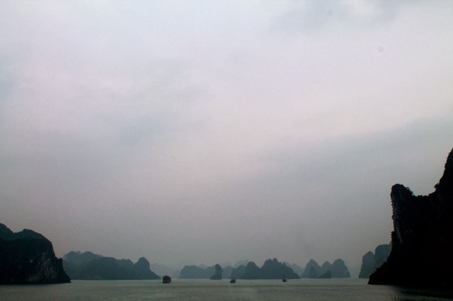 The first night on the boat it was a bit drizzly and a little eerie floating through the bay. It almost felt like we were in a scene from Pirates of the Caribbean. Before the sun set, we managed to see a traditional fishing village, which was really interesting. It’s only within the past few years that the locals have been required to build houses on floating rafts. Before that, they simply lived out of their fishing boats. Aside from their catches of the day, the only other way they generate income is from tour groups, like ours. Make sure to carry some small money with you if you decide to go on a floating village tour (which you likely will), so you can tip your rowboat guide. 20,000 Dong, less than a dollar U.S., is plenty.