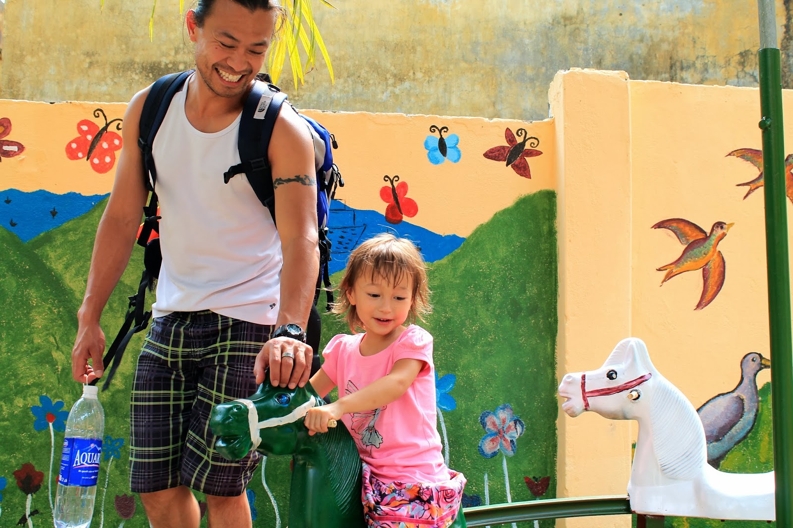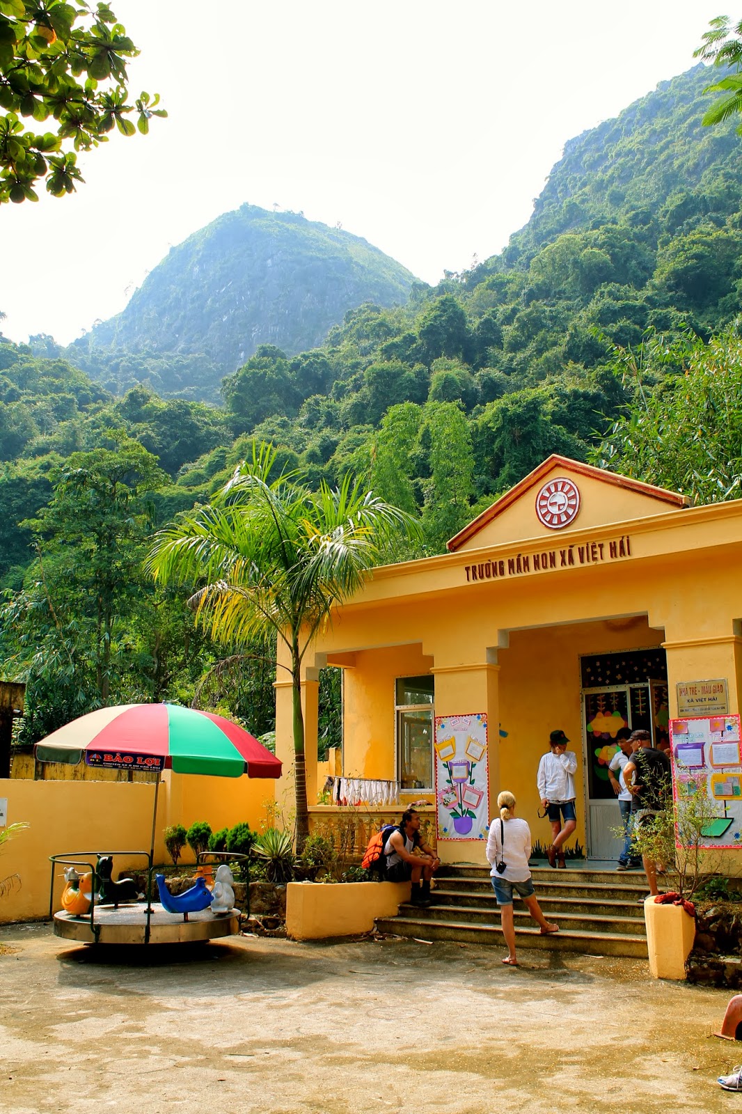The next day, seven others and I took off on our day boat, while the Jasmine returned to homeport with the passengers who had signed on for only the one night. It was great to see the sights with a smaller group of people. Our first stop was at a larger island (name?) where we biked about half an hour inland to the relatively large village (of? Village name would be lovely). We saw a school, local hospital and a family living (with the most adorable little boy) in a very traditional home. Everyone was super friendly and we were very well received by all of the locals.