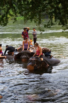 Throughout the day you get to care for the elephants in numerous ways. The volunteers don’t force the elephants to interact if they don’t want to, and most of contact with them is on their own terms. If they are hungry or curious they will likely come up to you, and at the end of the day, you get really up close and personally by swimming with them in the River Kwai. The mahouts are very helpful in showing you the best way to approach, feed, and bathe them, which makes for an amazing, well-rounded experience.