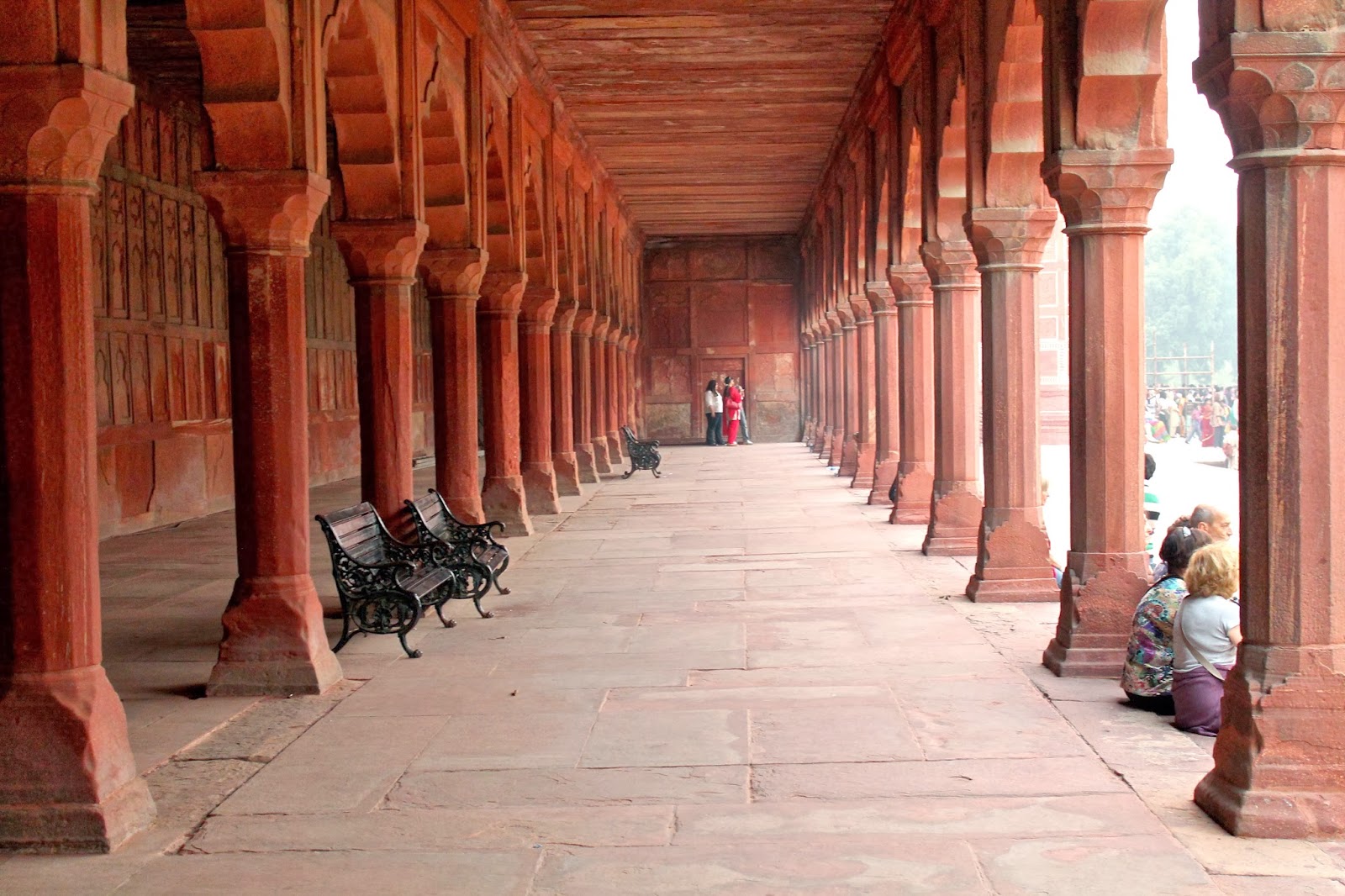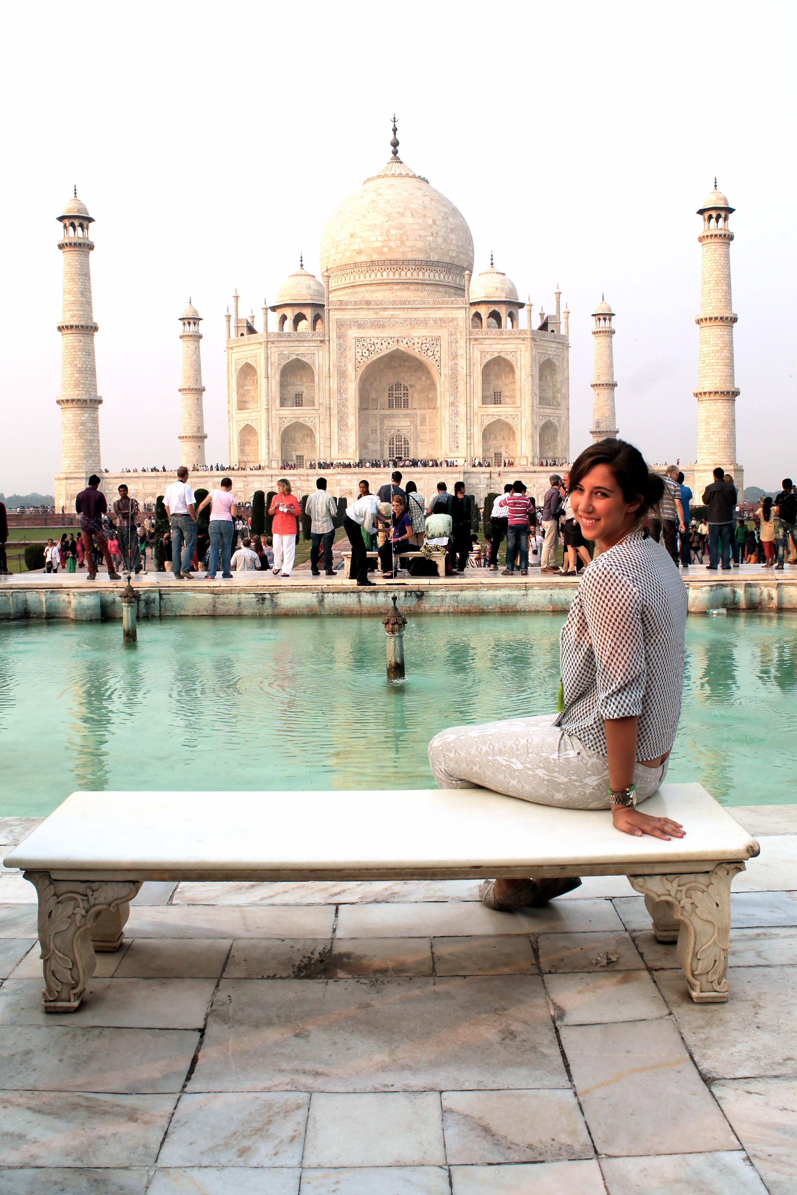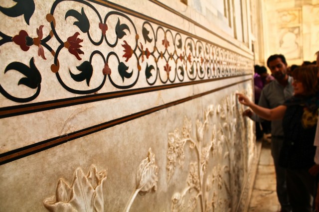 Upon arrival in Agra, we parked at the West Gate where you are instantly bombarded by ‘tour guides’. If I had to give one tip, I would say, be picky! Make sure their English is impeccable and ask how long they have been giving tours. Usually, the older the tour guide, the better. Mine had been doing it for 16 years (or so he says). Regardless, I made a good choice because he was a wealth of information and very willing to help take photos of me. Once you choose a guide, you hop on a tut tut and they zoom you down to one of the the main entrance gates. You pay the 750 Rs entry fee and then tourists are expedited to the front of the security line, which is great because the line is huge! For those curious, women are searched and checked separately from the men. Another thing to keep in mind is that this is a Muslim monument, and while a dress code isn’t strictly enforced, it’s curteous to be covered. I wore long pants and a kept my shoulders covered to whole time.