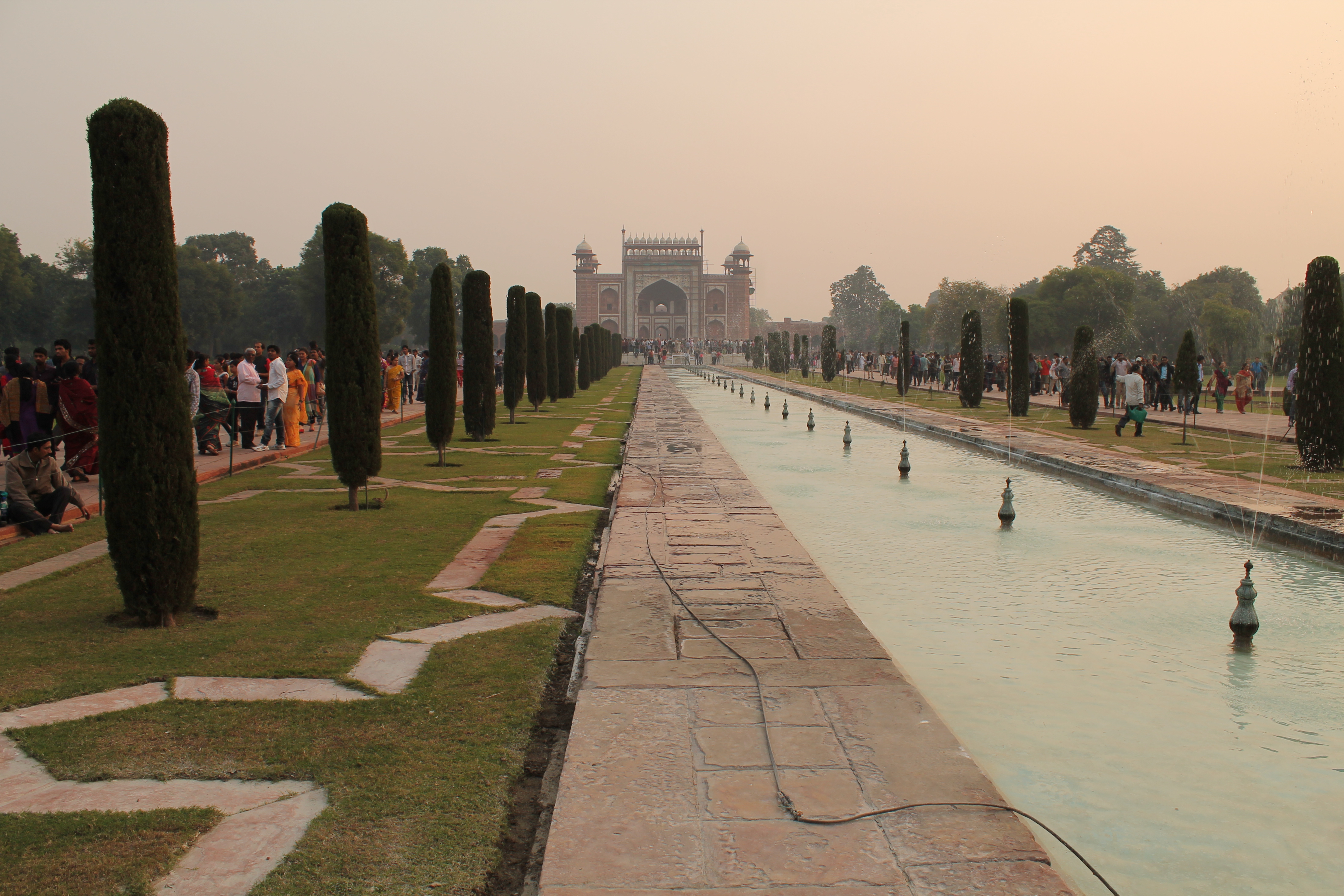Soon, the sun started to set, and the Taj slowly started to take on an orange glow. The three best times to visit are during sunrise, sunset, and a full moon, according to my guide. Pretty incredible that the Taj changes colors from pink to orange, to a milky white all in the course of a day.