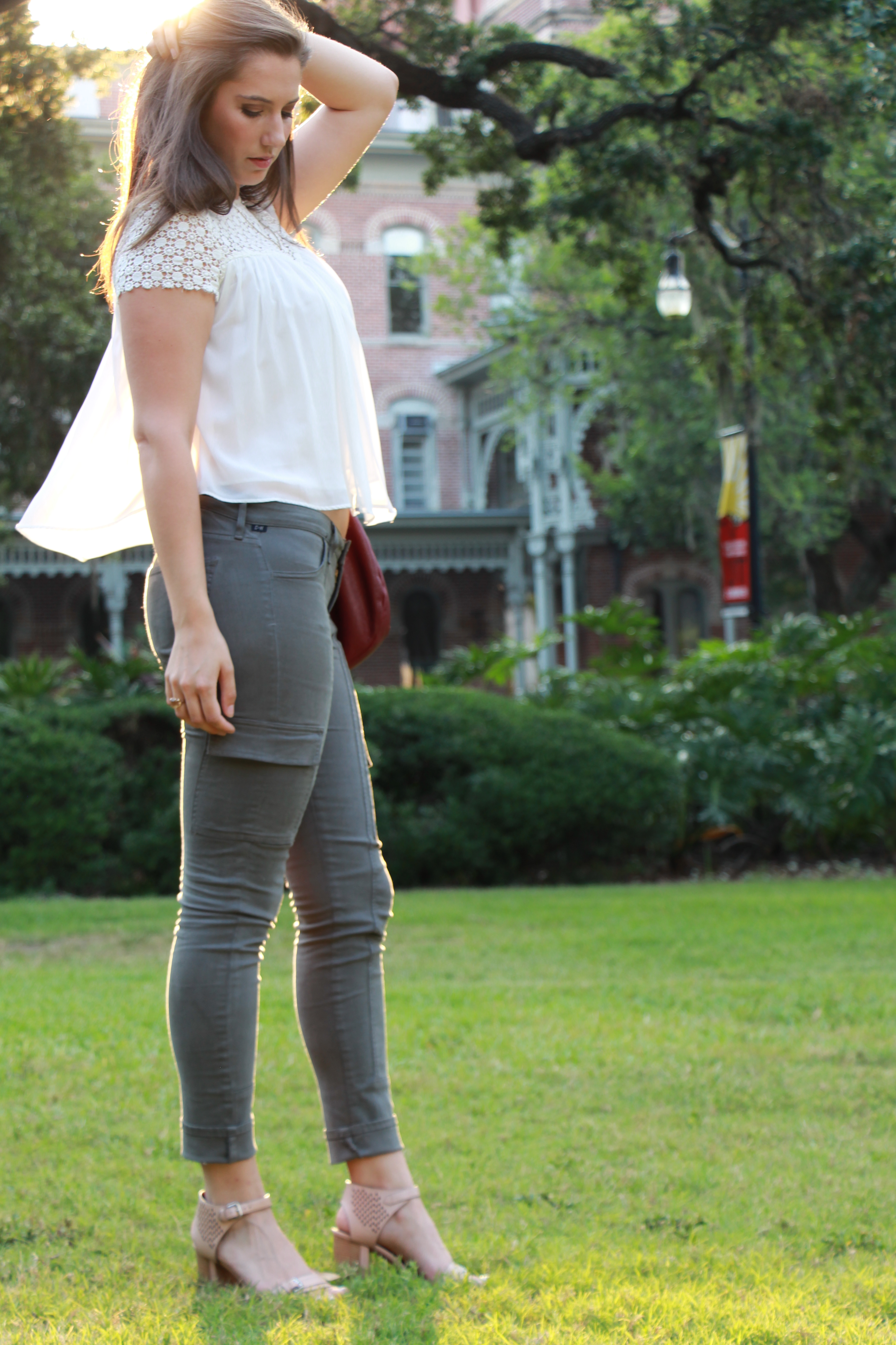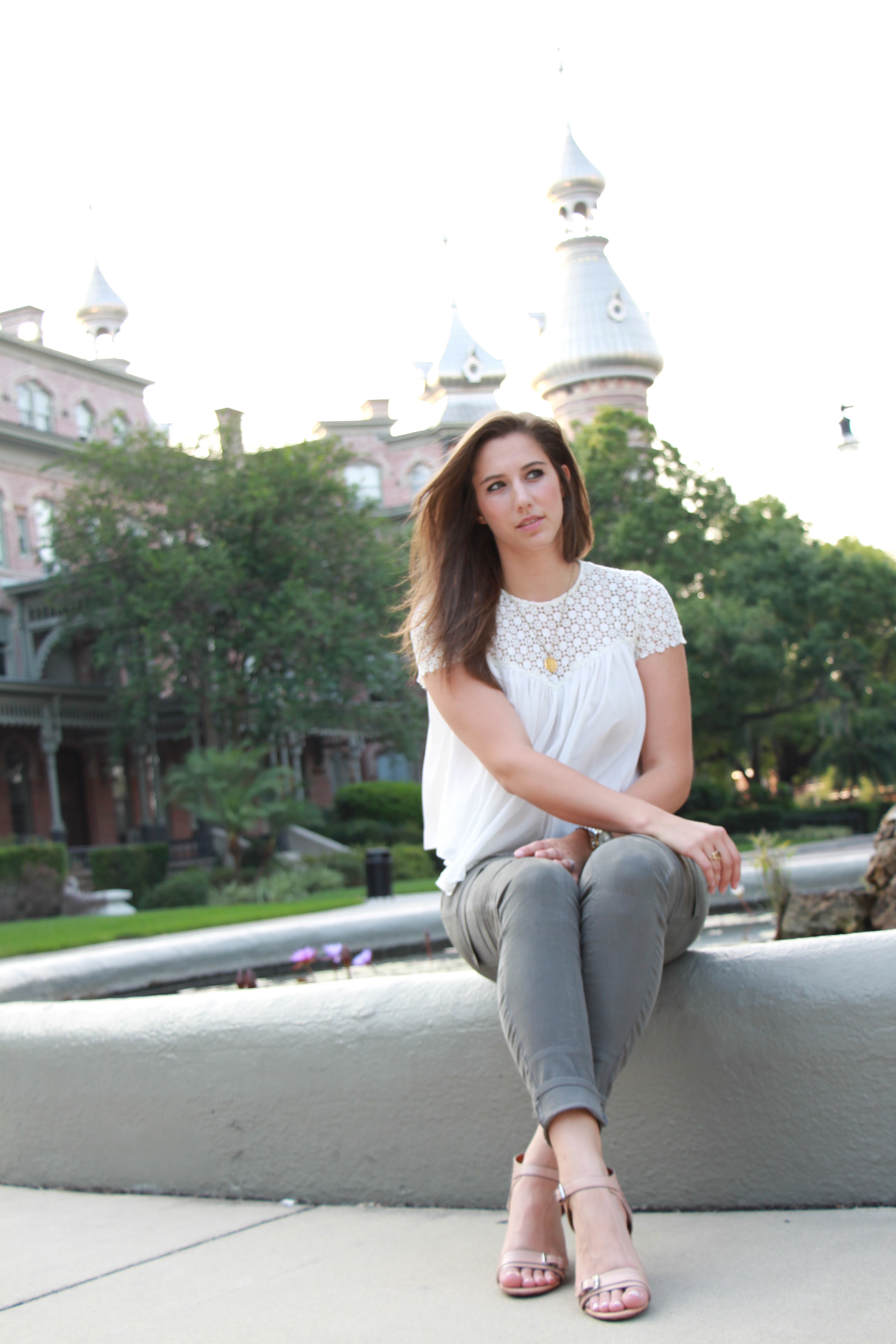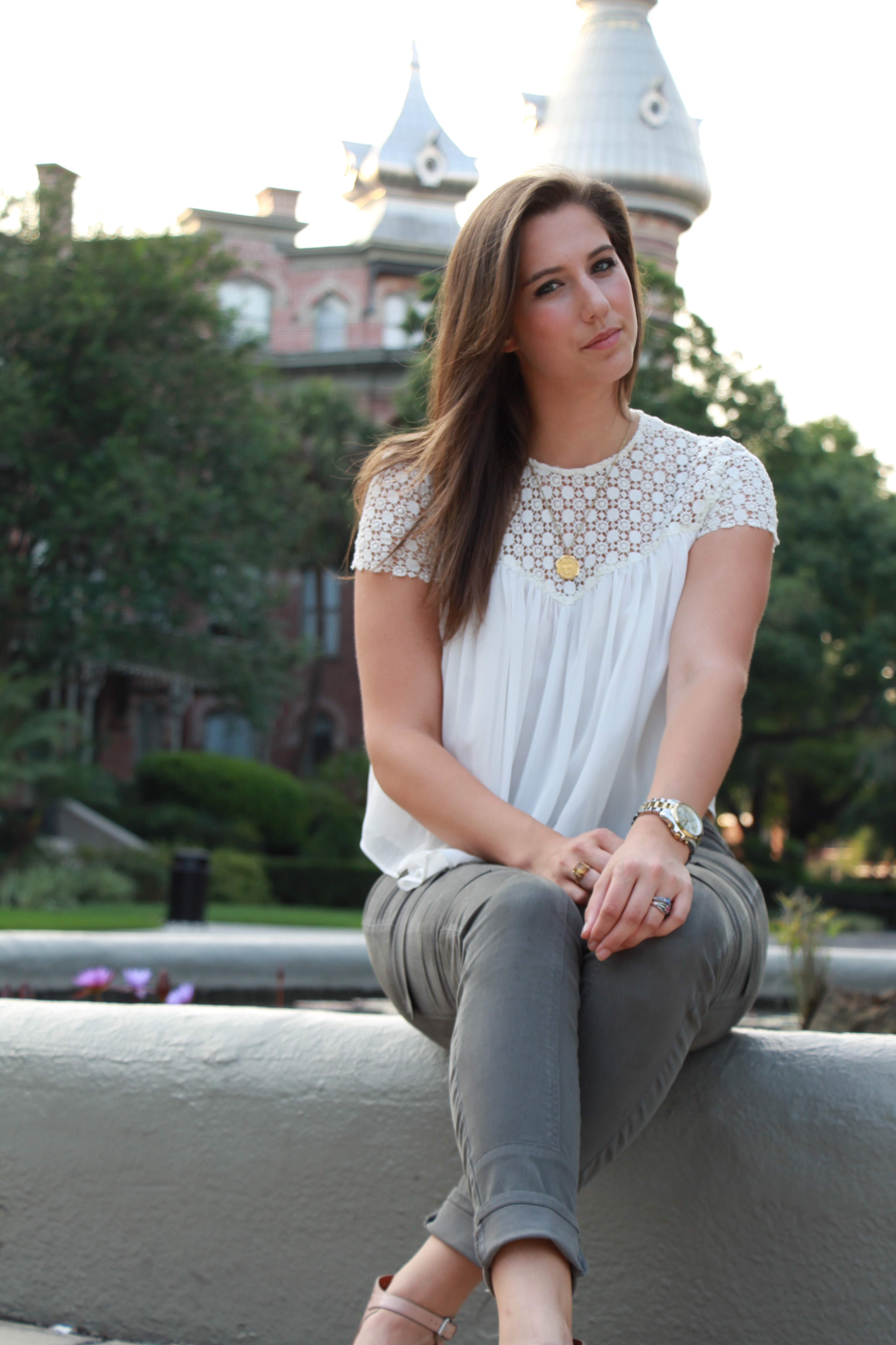 Screen Shot 2014-05-25 at 2.52.40 PMWhen the sun goes down in Tampa you can finally break out your favorite pair of skinnies! I’m in love with my Citizens cargos right now and decided to pair them with some girly pieces to mix it up. I always think its fun to mix and match unexpected items together; to me it seems a little more inventive.