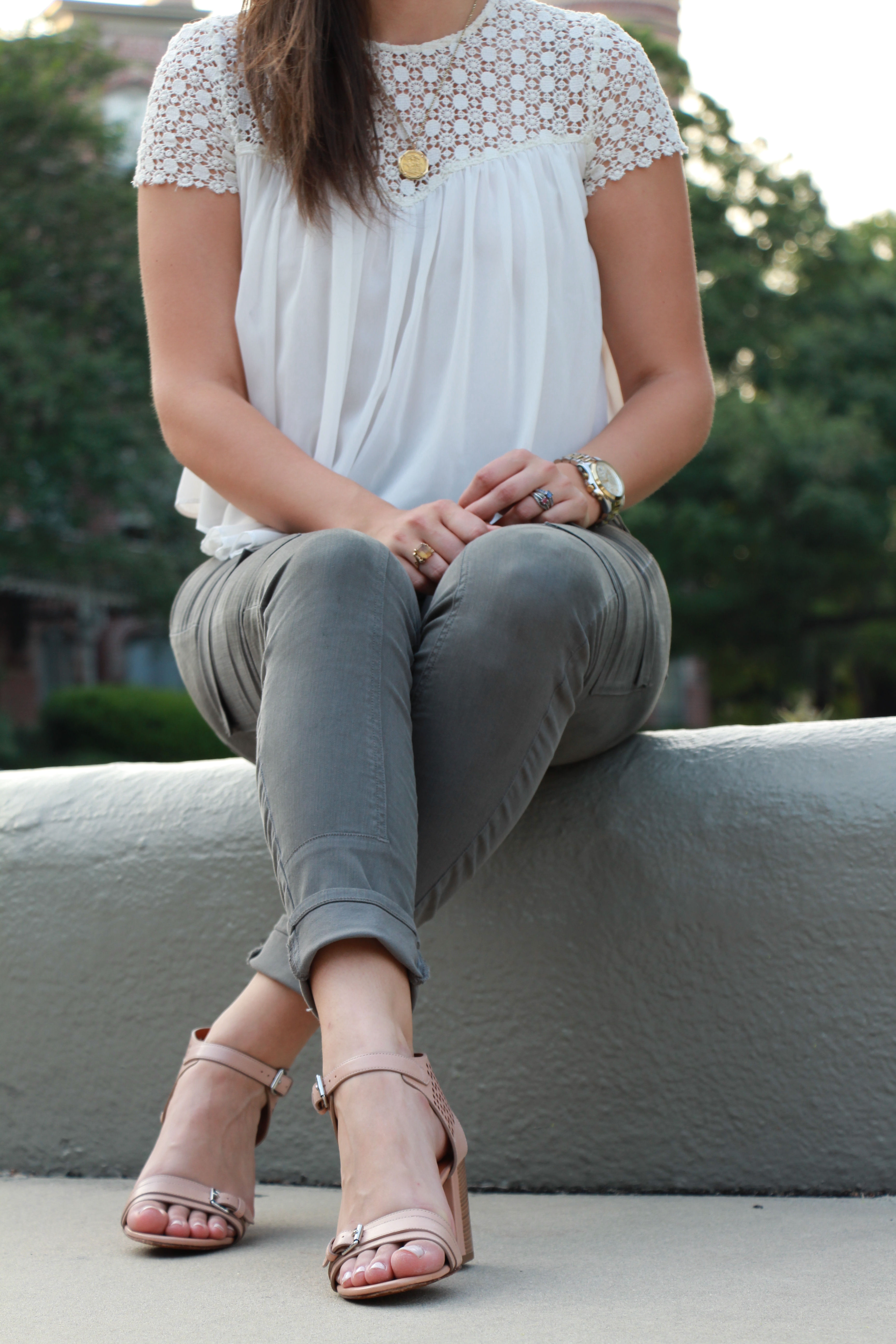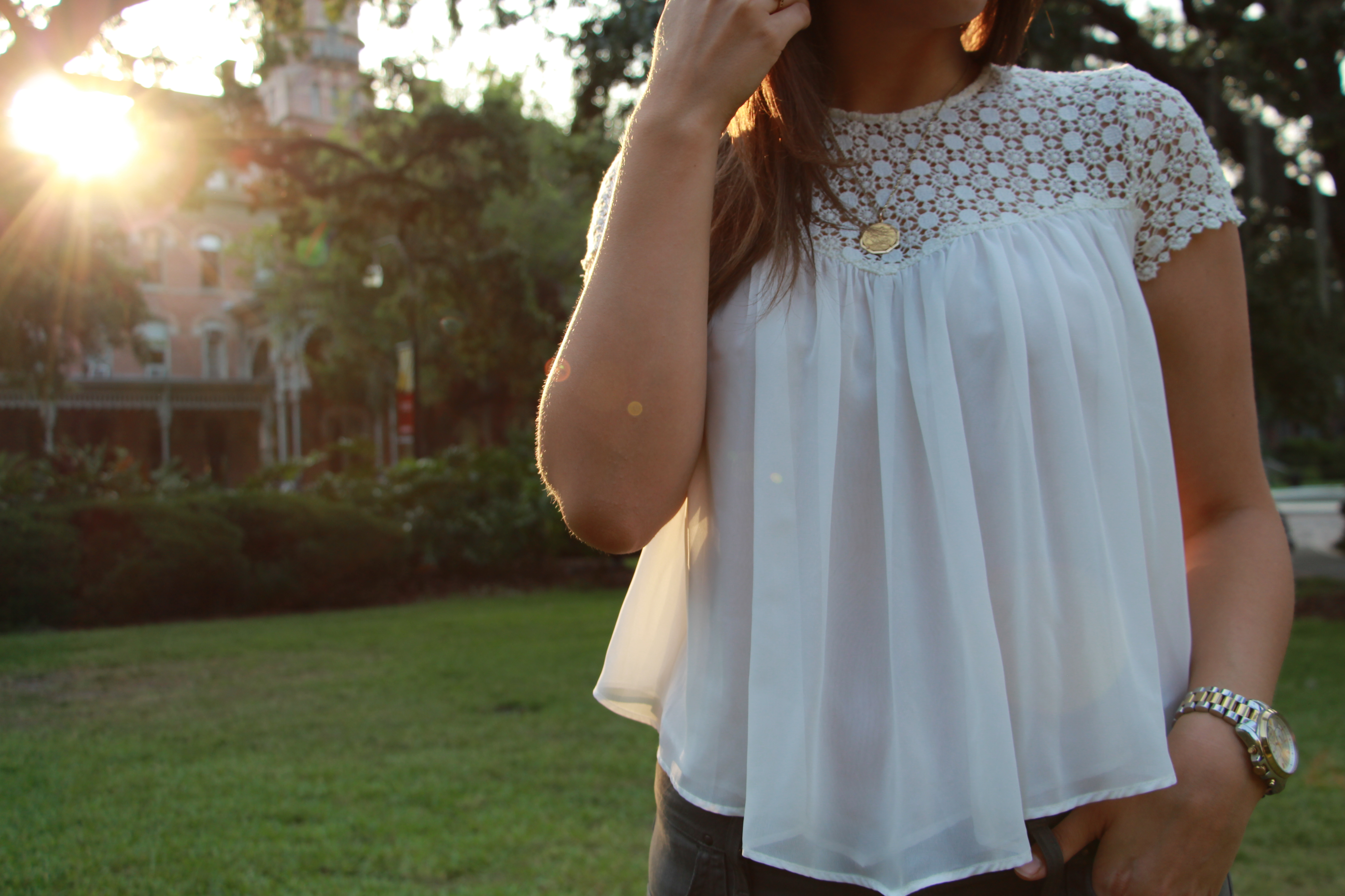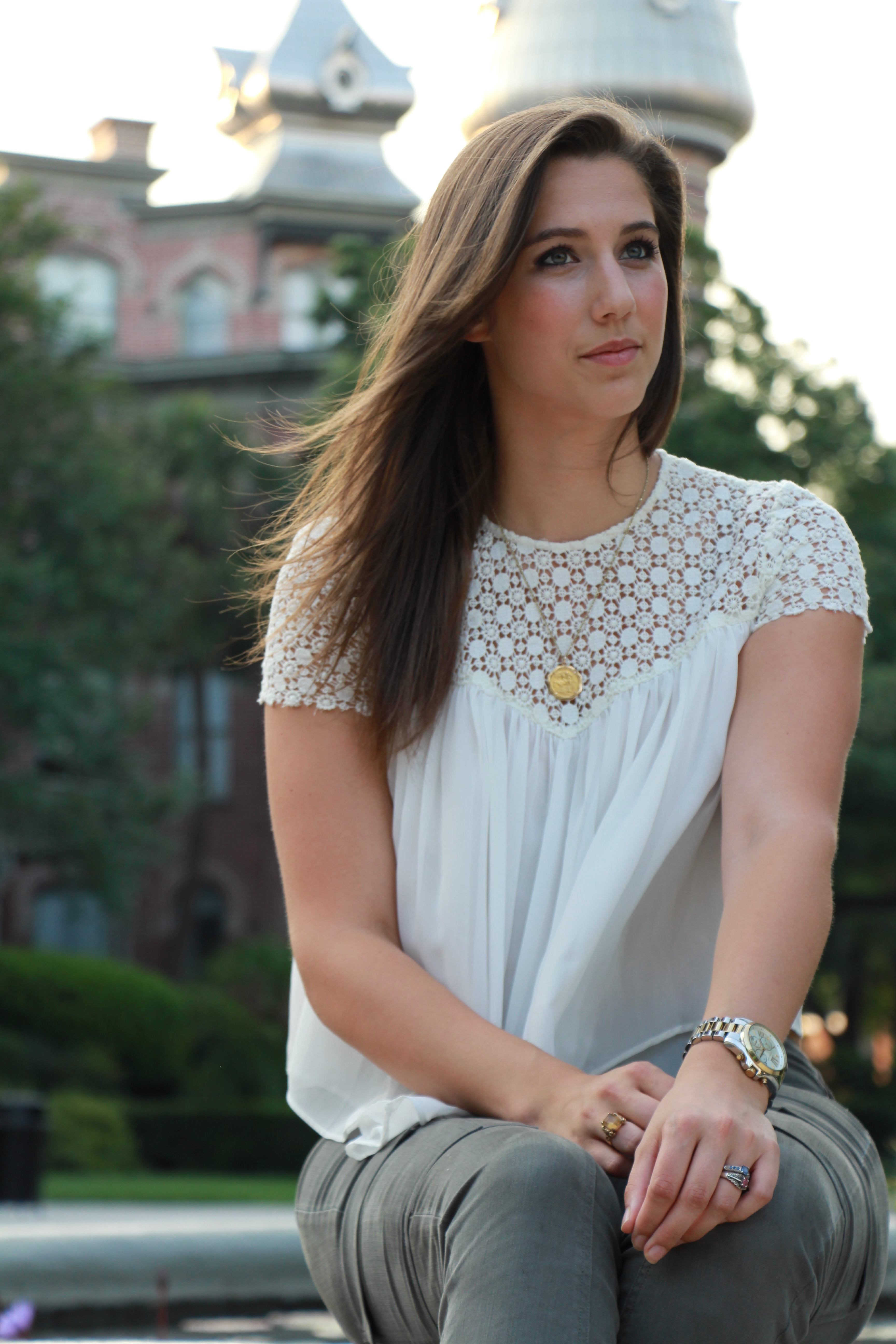 Screen Shot 2014-05-25 at 2.52.40 PMWhen the sun goes down in Tampa you can finally break out your favorite pair of skinnies! I’m in love with my Citizens cargos right now and decided to pair them with some girly pieces to mix it up. I always think its fun to mix and match unexpected items together; to me it seems a little more inventive.