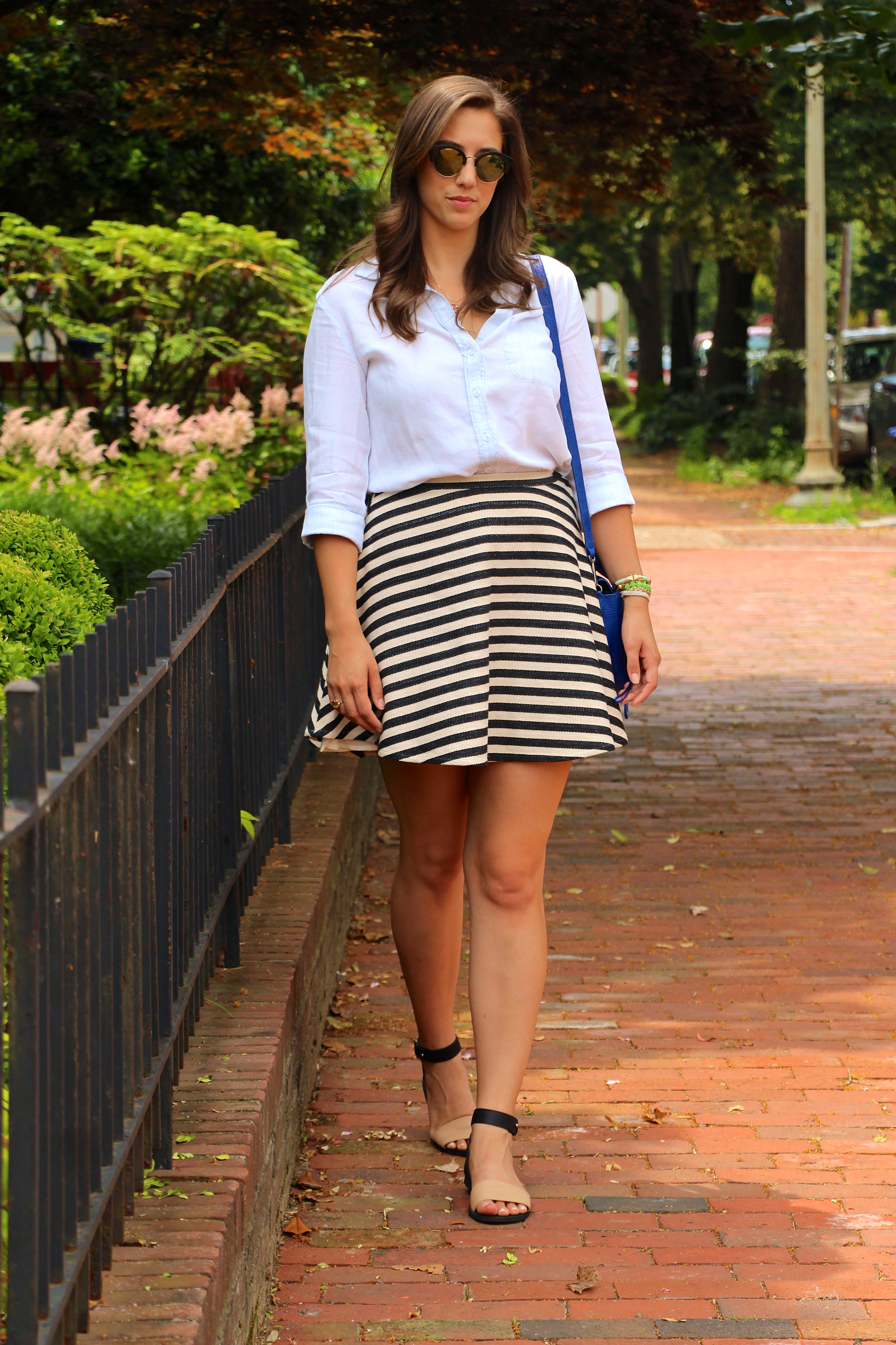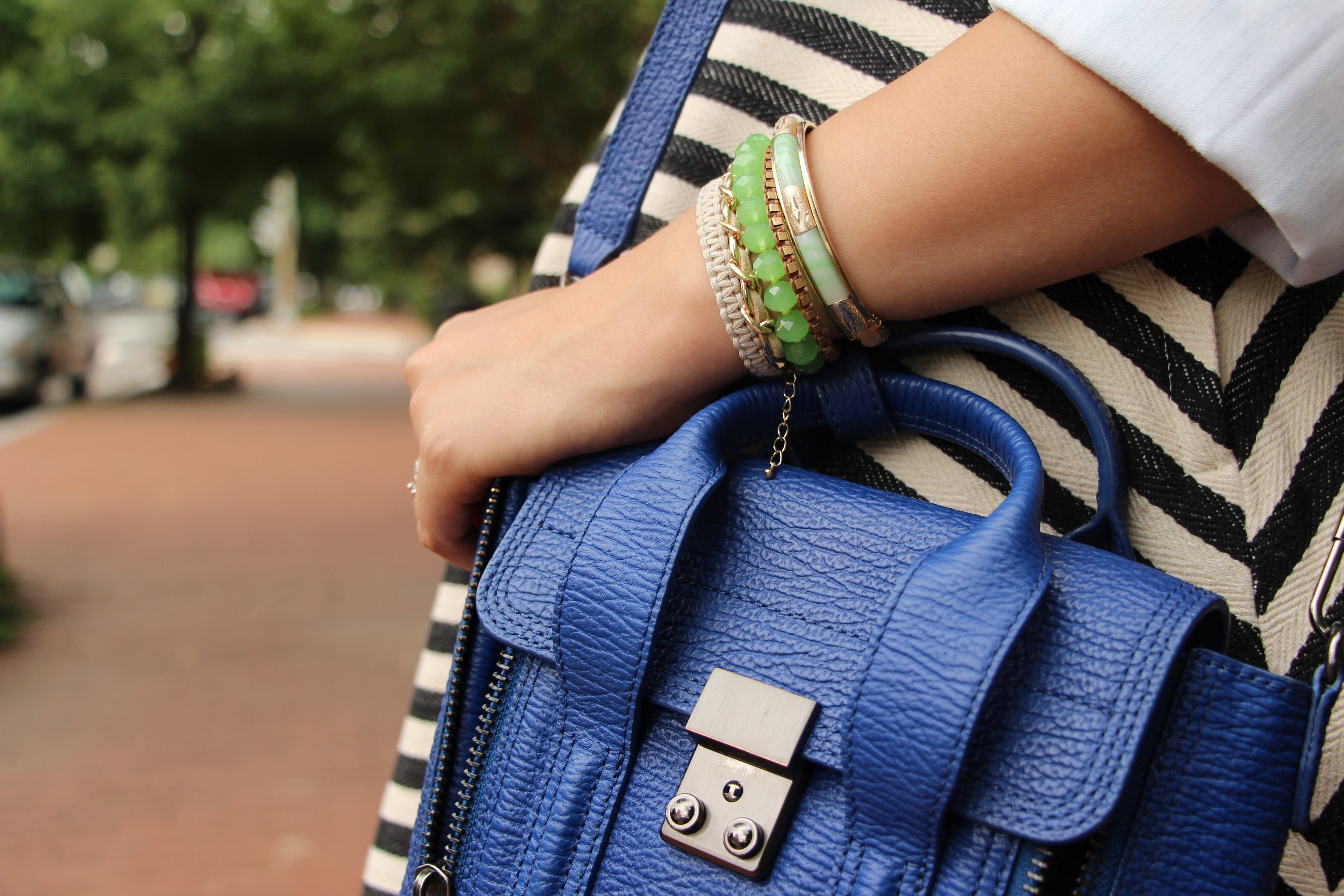 Such a cute outfit. I love the classic black and white paired with the pop of blue!