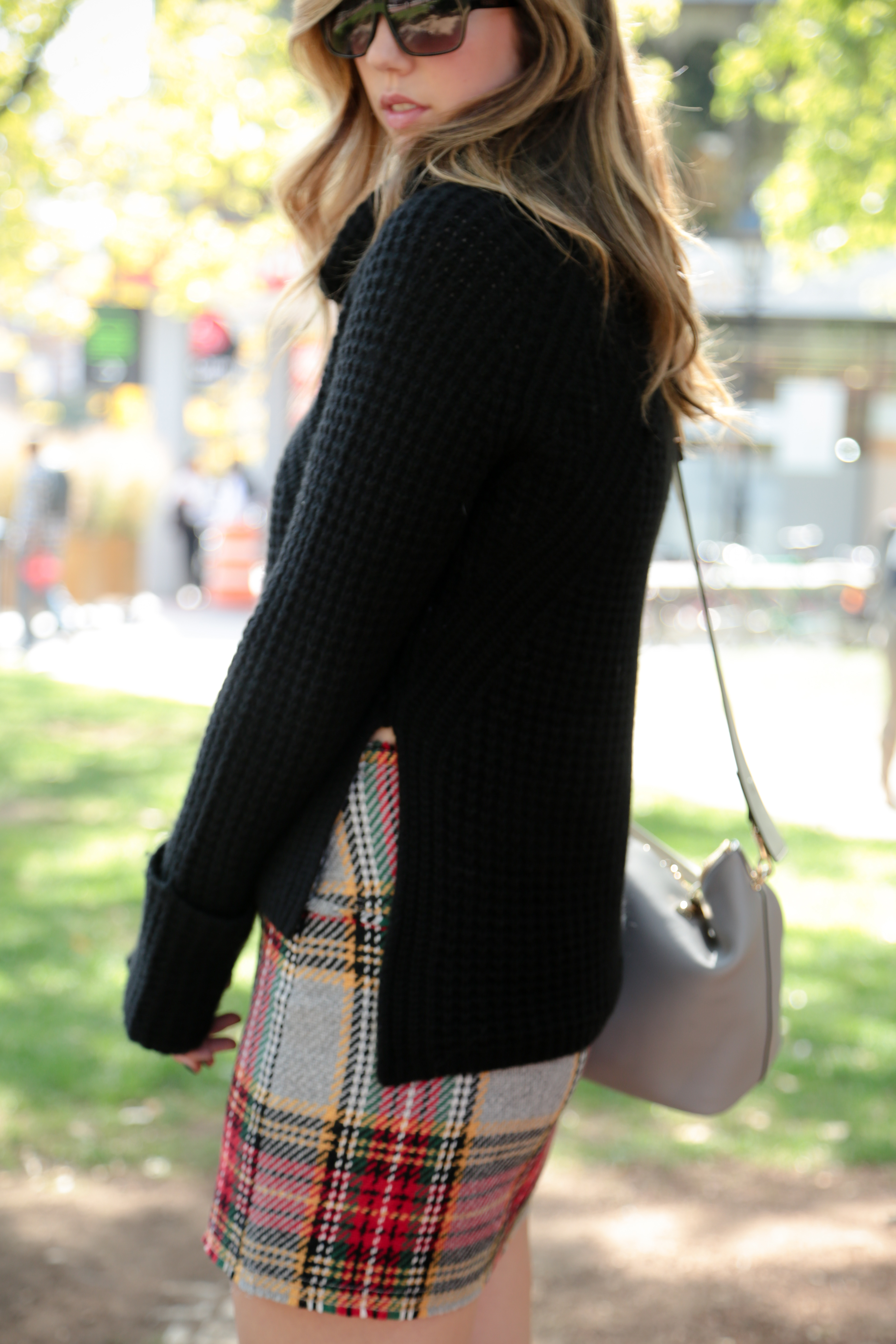 Fall weather is upon us in Boston, and I figured it was about time to break out the knits that I have been lusting after all summer. There’s something so unceremoniously chic about New England autumn style, that makes even the least preppiest of fashionistas want to bust out some tweed and tartan print. With that in mind, I snagged an old collegiate favorite out of my closet, my J. Crew tweed skirt, for a an updated spin on a back to school outfit. Shooting in Harvard Square seemed equally as appropriate, and I fit right in with all the stylish university newcomers floating from coffee shops to class.