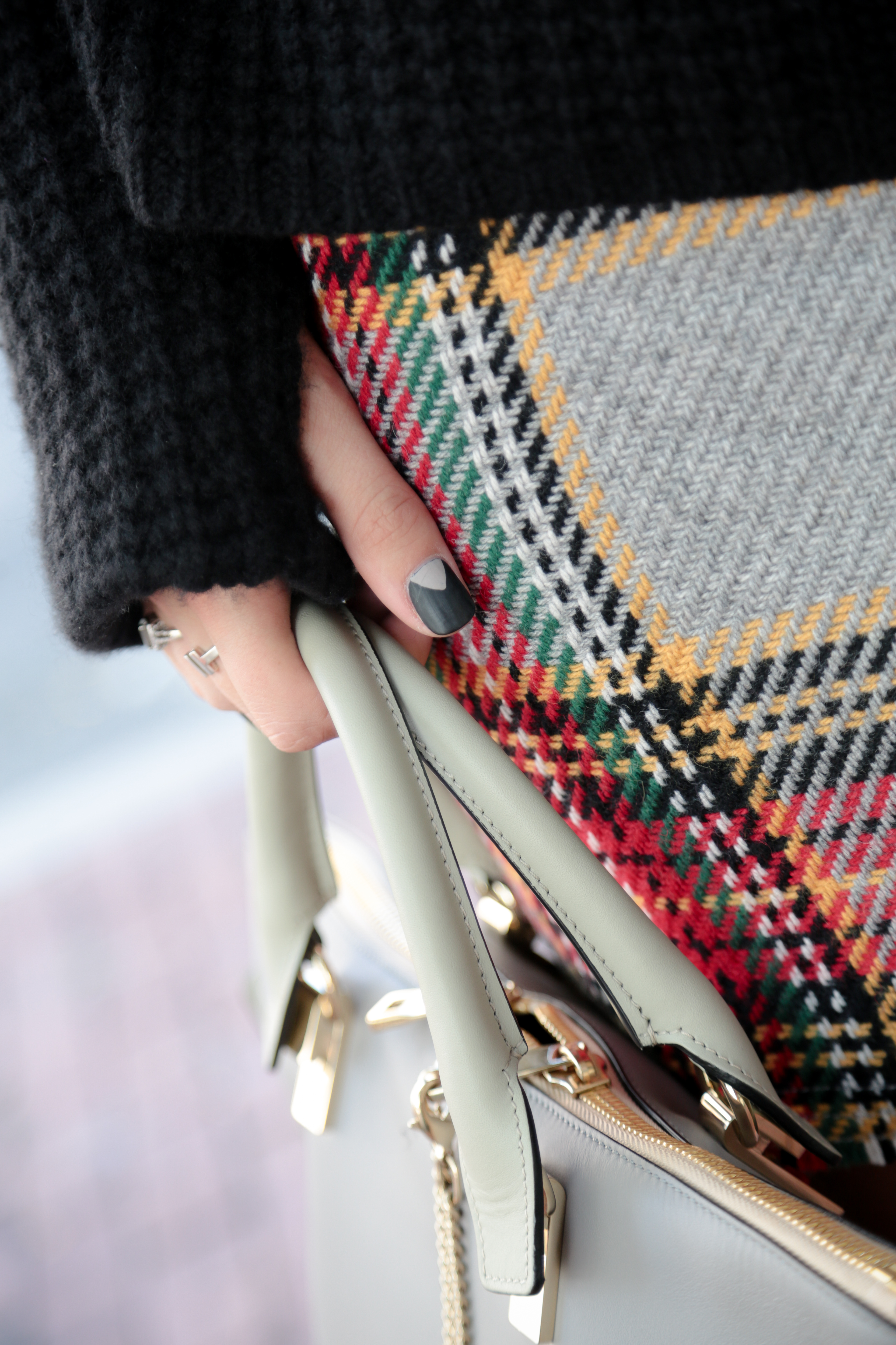 I ‘edged-up’ the outfit with a pair of rag & bone mules and black chevron nails to keep the look from going too Cher a la Clueless. There’s nothing quite like a classic Chloe carryall bag to balance out the palette with cool shades of light purple and gray, and it was a great finishing touch to this (almost) too-cool-for-school outfit.