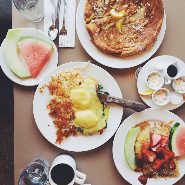 Hankering for a late night snack? This pancake house, serving up blintzes, eggs benedict, and one of the best German pancakes I have ever had, is open 24-hours away making it the perfect brunch spot all weekend.