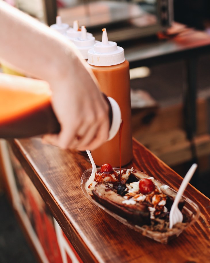 If you’ve been following me for a while, you know that I love heading to The Big E every year. The combination of fair food, colorful rides, and the ultimate in people watching makes for the perfect prelude to Fall festivities. The team at The Big E was kind enough to invite me to come and try all the tasty eats again this year, and boy did I chow down. From their famous cream puffs, to a BBQ split (think ribs, mashed potatoes, pulled pork, and more!), a deep fried pineapple upside-down cake, a pretzel wrapped brat — I’m getting full just thinking about it!