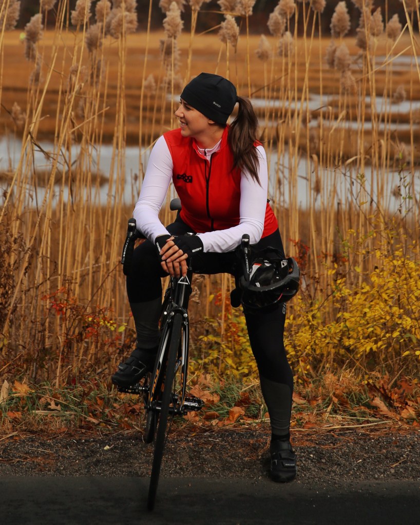 I was chatting with some fellow cyclists the other day, and several selected base layers as one of their top must-haves for cold rides. For winter, many lean toward merino, but it doesn’t work for everyone. For me, I like to use a combination of merino, with a tank or short sleeve microfiber. On really cold days, you can find me also adding another layer; I’m partial to the ceramic base layer from Giordana, which has high heat-insulating properties allowing body temperature to remain constant even in extremely cold conditions. Other favorites can be found here, here, and here.